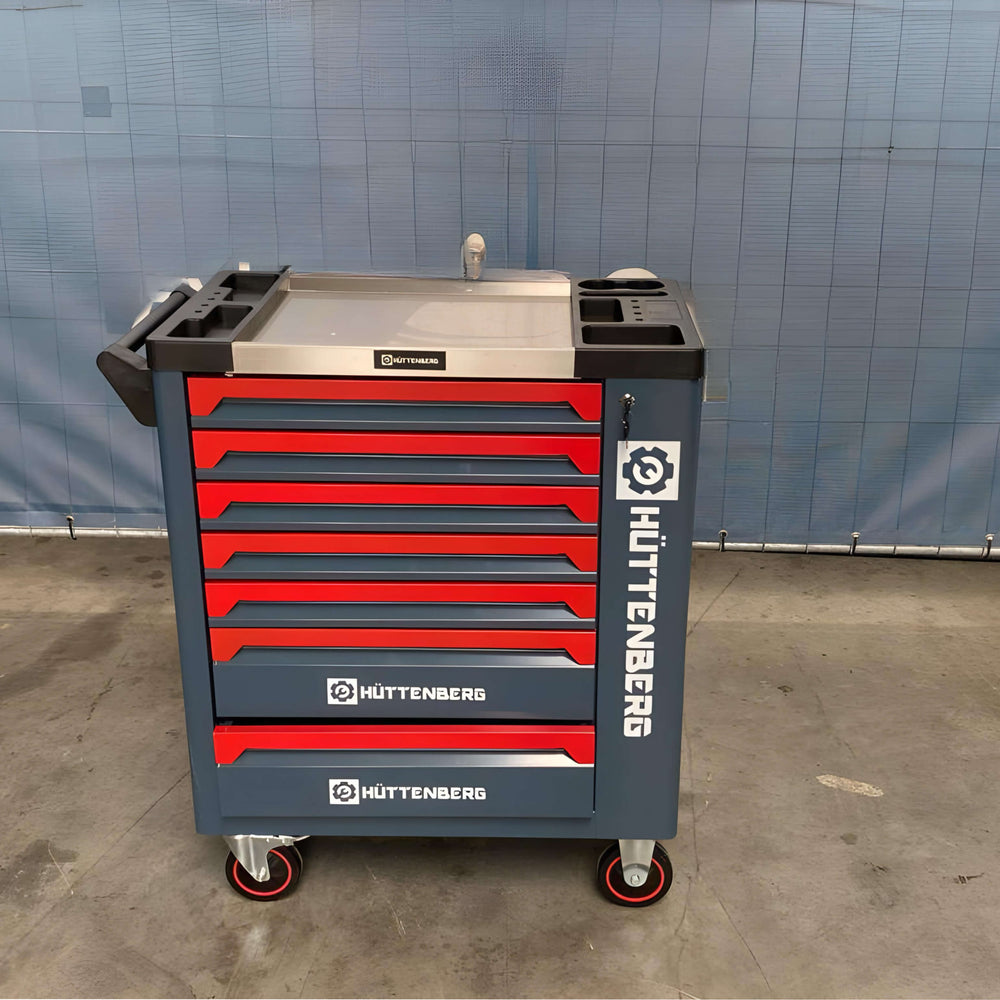 Questo set di utensili completo di Hüttenberg offre una soluzione completa con 259 pezzi, ideale per professionisti e hobbisti esigenti. L’armadietto robusto e spazioso è dotato di 8 cassetti e 6 scomparti, garantendo un’organizzazione ottimale degli utensili.